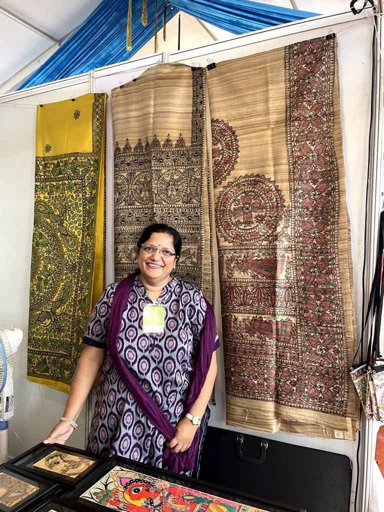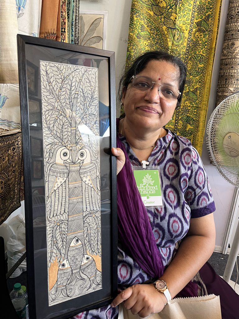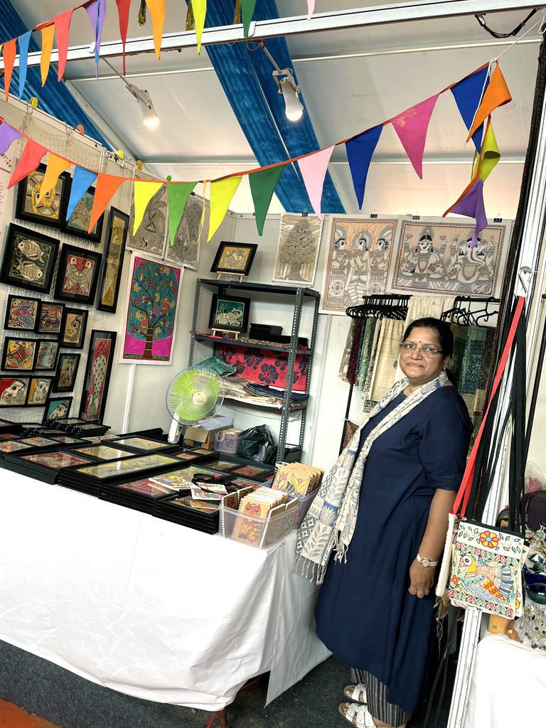 At the Artisan Collective 2022, amidst the vibrant array of stalls, one bore witness to Vidushini Prasad’s personal journey of creativity and expression. As the founder of Madhubani Arts India, she nestled in the midst of the event’s rich tapestry of crafts, proudly showcasing the exquisite beauty of Mithila art. This display of exclusive creations, meticulously crafted from handmade paper, silk, and cotton, was a moment of pride that elevated her participation in the event.