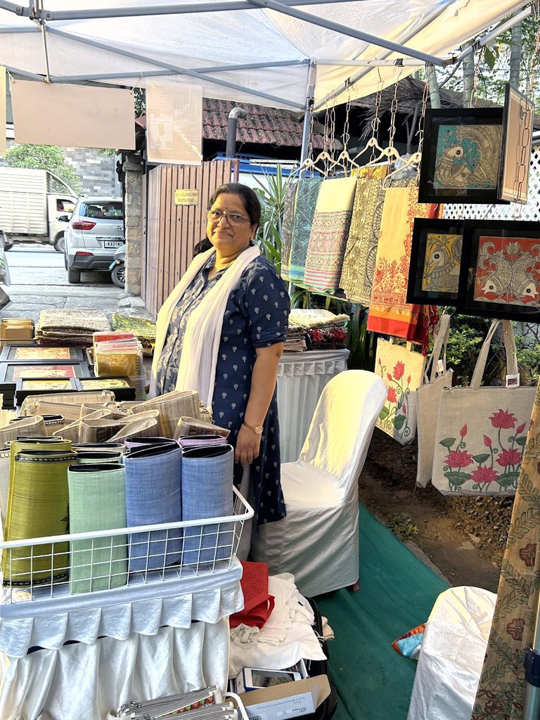 The venue, Namma Ashram, provided an ideal setting for the fair, thanks to the support of Trikala Arts and its founder. Notable among the guests was Bengaluru’s esteemed designer, Devika Krishnan, who visited Vidushini’s stall and engaged with the organizer, Komala, in a conversation on sustainable, handmade fashion.