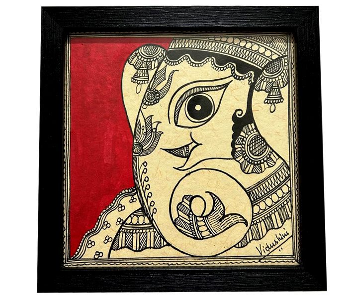 Explore our exquisite collection of Madhubani-style Ganesha paintings, a fusion of divine artistry and cultural heritage. These vibrant, handcrafted artworks depict Lord Ganesha in intricate detail, showcasing the rich Madhubani tradition. Each piece is a masterpiece, perfect for adorning your space with spiritual charm